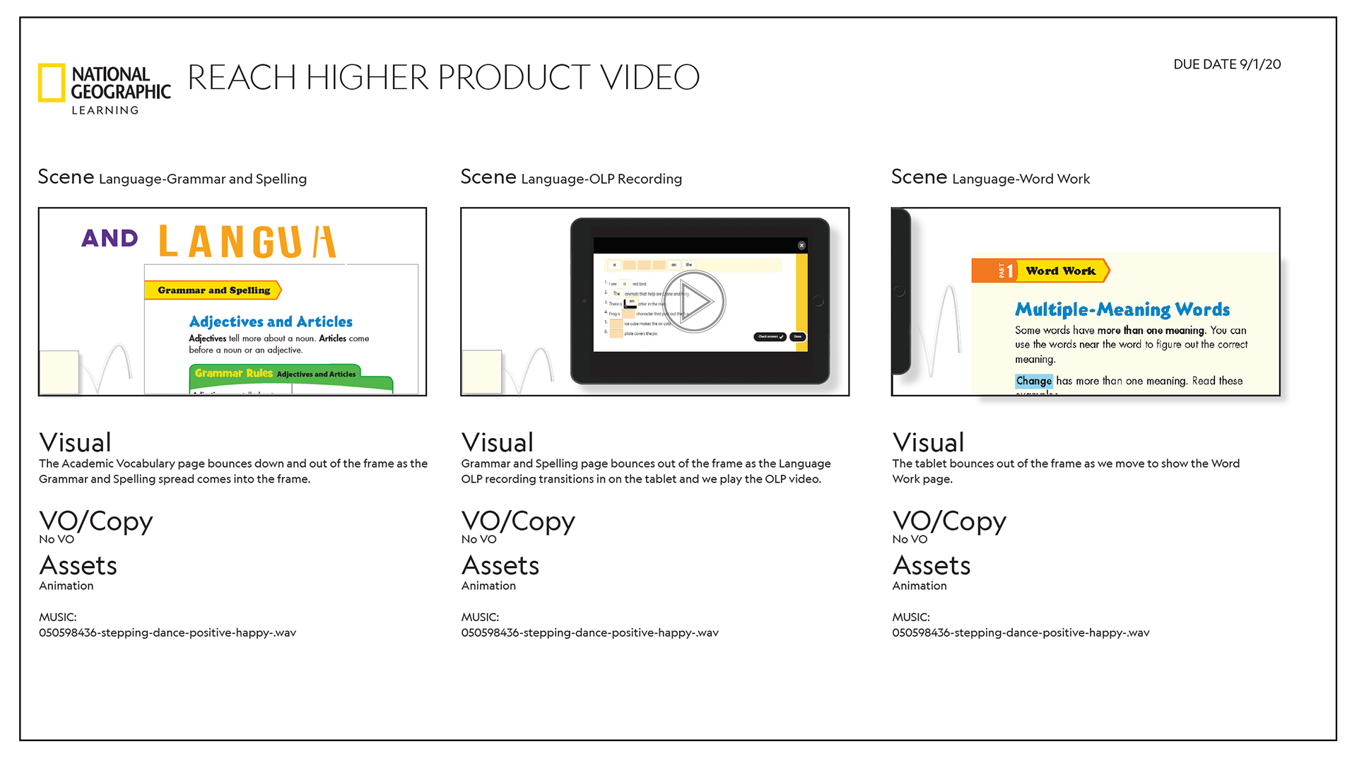 Reach Higher Product Video | Click image to view full storyboard PDF